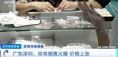 2023年疫情放開以來,水貝珠寶圈是一片欣欣向榮的景象,黃金、寶石、翡翠的銷量直線飆升,價格也跟著上漲,甚至是翻倍。除了黃金、寶石、翡翠之外,珍珠在今年成為“香餑餑”,遭到哄搶!據央視財經記者采訪了解,水貝的珍珠貿易和鑲嵌加工占到國內大約一半左右的市場份額。今年以來,珍珠飾品銷售火熱,價格也水漲船高。