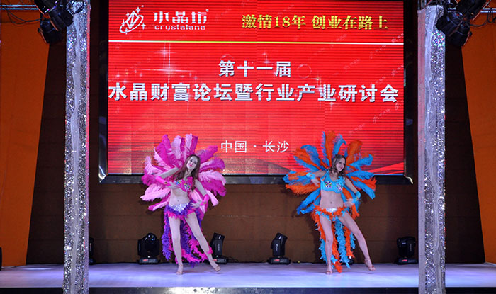 研討會開幕 自水晶坊第十一屆水晶財富論壇暨行業產業研討會籌備以來就備受多方關注,活動于2014年11月29日在湖南長沙天元大酒店盛大召開。 俄羅斯美女走秀 湖南中崛水晶坊總經理許界軍在會談中向前來的諸位加盟商強調渠道的力量成就了水晶坊的方城布局陣營,并表示公司總部給予各加盟商極大的支持,從人員,到物料,從會議政策,到會議現場,全部呈現了公司總部對各區域加盟